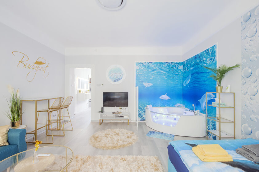 Another apartment has been added to the popular AquaFlat apartments. A modern and exclusive apartment for rent in a central part of Budapest, next to the Stadionok metro station (200m). Here you will find everything you need for a pleasant stay. Explore Budapest and relax at the end of the day in our colour-therapy hot tub. You don't have to leave hungry as we prepare a mini breakfast for our guests every day.